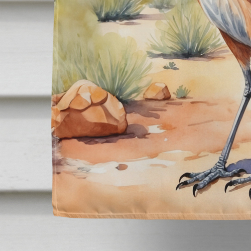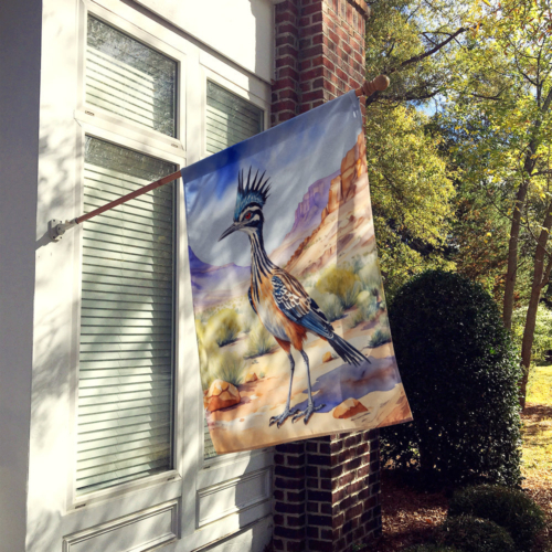 House Flag featuring breed specific Roadrunner artwork. Presenting our Heavy Duty Polyester House Size Decorative Sleeve Pole Flag, a vibrant addition to enhance the aesthetic appeal of your home. This large decorative flag, measuring approximately 28 x 40 inches, offers ample coverage and visibility. Each flag is meticulously sewn and made individually, ensuring a unique piece that may slightly vary in size. It’s a sleeve pole flag, designed to fit a standard decorative flag pole effortlessly. Please note that the flag pole and bracket are not included and should be purchased separately. What sets our flag apart is its dual-sided print. The design is mirrored on both sides of the fabric, allowing for uniform visibility regardless of the angle. Printed in full color, our flag showcases vibrant hues that truly stand out. To ensure lasting vibrancy and durability, the dyes are heat-set into the fabric. This ensures your flag remains bright and captivating through various weather conditions. Elevate the look of your home with our Heavy Duty Polyester House Size Decorative Sleeve Pole Flag!