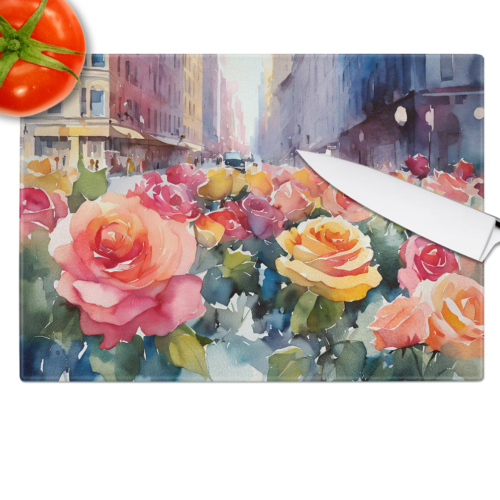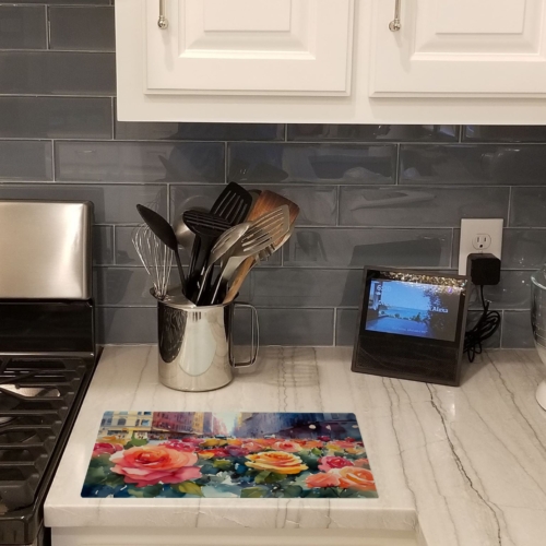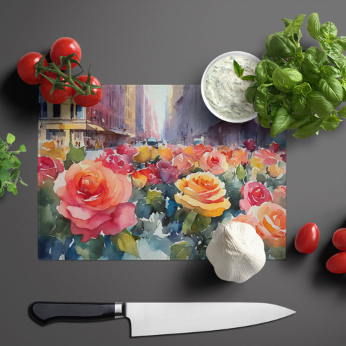Glass Cutting Board featuring breed specific New York Roses artwork. Introduce your kitchen to the vibrant, large Decorative Glass Cutting Board from Caroline’s Treasures. Crafted from resilient tempered glass, this board is not only a utilitarian necessity but also a colorful art piece. With its generous dimensions of 15 inches in height and 12 inches in length, it offers ample space for all your cutting needs. Every piece showcases captivating artwork from distinguished artists, bringing an aesthetic edge to your kitchen. Beyond its attractive design, this cutting board ensures your countertop stays pristine and unscathed, owing to its heat-resistant properties. Engineered with user convenience in mind, it features non-skid feet for stability, and rounded corners for additional safety. Its robust construction renders it virtually unbreakable, guaranteeing longevity. The board comes with protective feet bumpers, maintaining its position during use. This product is recommended to be hand washed only. Proudly printed and assembled in the United States, this cutting board exemplifies superior craftsmanship. With Caroline’s Treasures’ Decorative Glass Cutting Board, you’re investing in a blend of functionality and artistic flair.