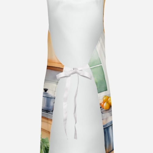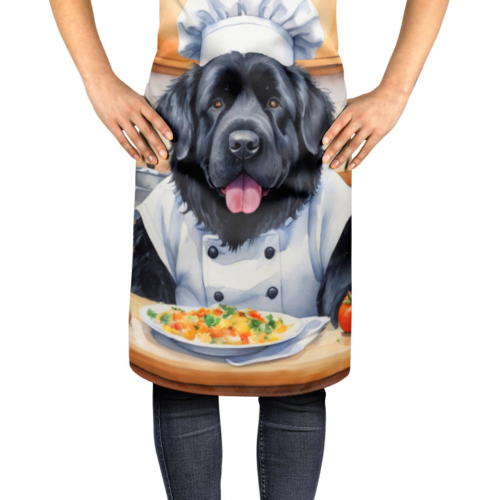 Apron featuring breed specific Newfoundland artwork. Elevate your cooking, baking, and grilling experiences with our versatile Kitchen or BBQ Apron. This Bib Style apron isn’t just limited to culinary activities – it also serves as an excellent baking apron, artist apron, server apron, gardening apron, or even a dog grooming apron. The apron showcases vibrant full-color artwork contributed by one of our talented artists, bringing a dash of style to your daily tasks. With dimensions of approximately 27″W x 30″H, it provides ample coverage to protect your clothing from spills and splashes. Our apron is meticulously crafted from 100% Ultra Spun Polyester, known for its durability and lightweight nature. The apron comes with white tie straps, ensuring a comfortable and adjustable fit for all. It’s a perfect choice for kitchen apron enthusiasts, whether you are a woman or a man. Designed for easy maintenance, this apron is fully machine washable. The quick-drying polyester material actively reduces staining, keeping your apron looking fresh and new for longer. Our beautifully designed apron isn’t just a functional kitchen accessory – it’s a fashion statement in the culinary world!