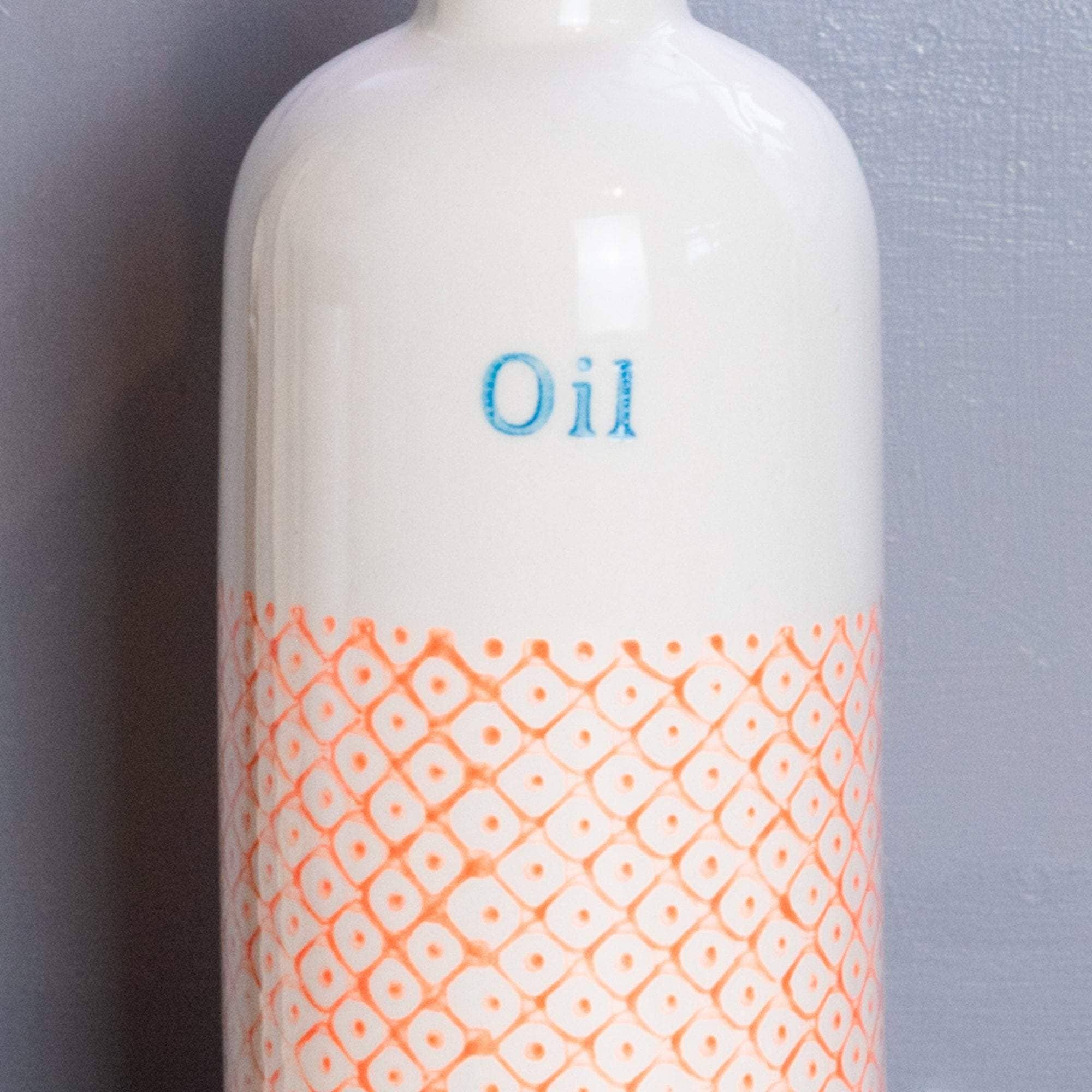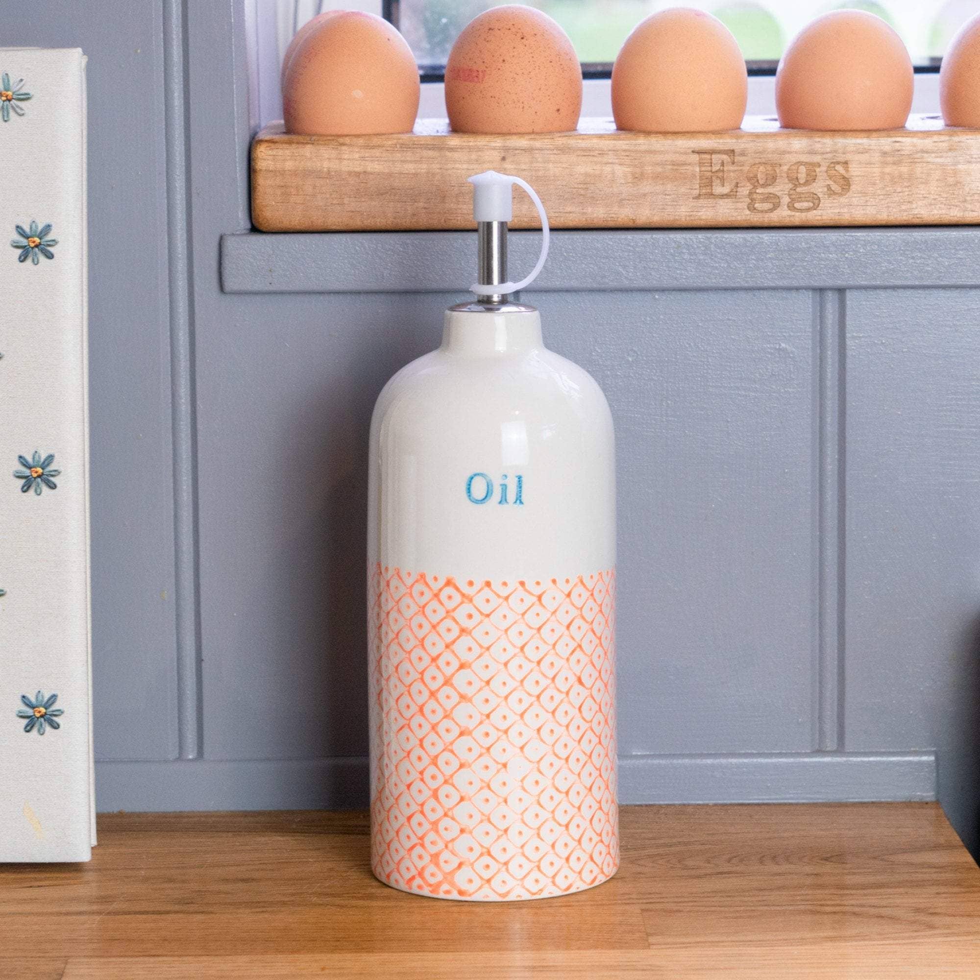 Nicola Spring Hand-Printed OliveOil Bottle Orange Blue 500ml