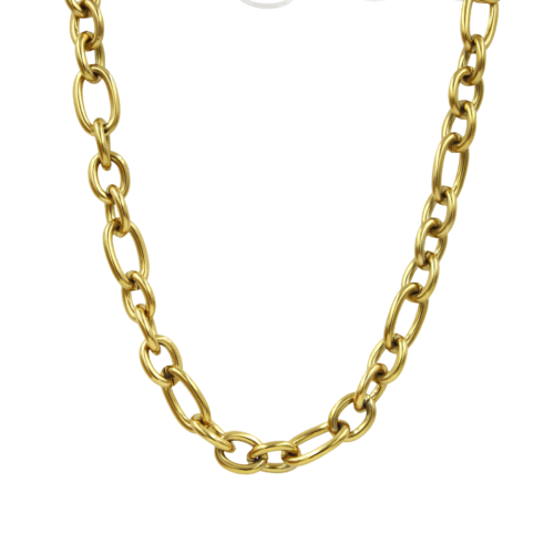 Our Vivian necklace features beautiful chunky links in a sexy collar length. A large toggle serves as the closure and can be worn in the front of back.-“Vintage Gold” Stainless Steel Chain – Toggle closure – 17″ length- Handcrafted in CaliforniaStainless Chains have heat-adhered heavy plating and coating and are tarnish and fade-resistant.