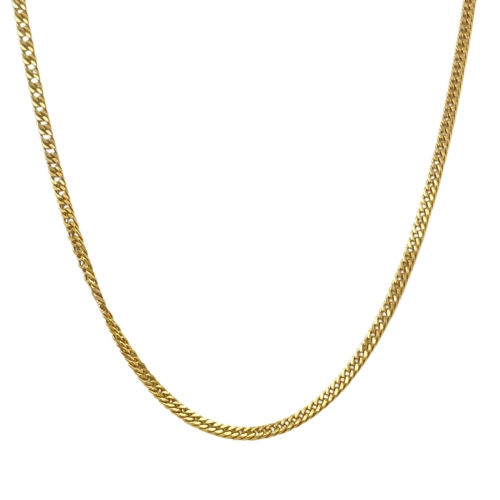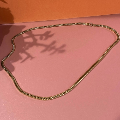Flat collar length curb chain necklace with vintage vibes, perfect for styling day into night.- “Vintage Gold”plated stainless steel chain- 18″ L plus 2” extender- Handcrafted in CaliforniaStainless chains have heat-adhered heavy plating and coating and are tarnish and fade-resistant.