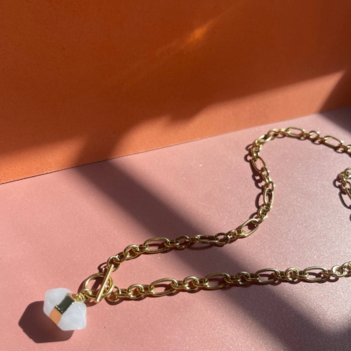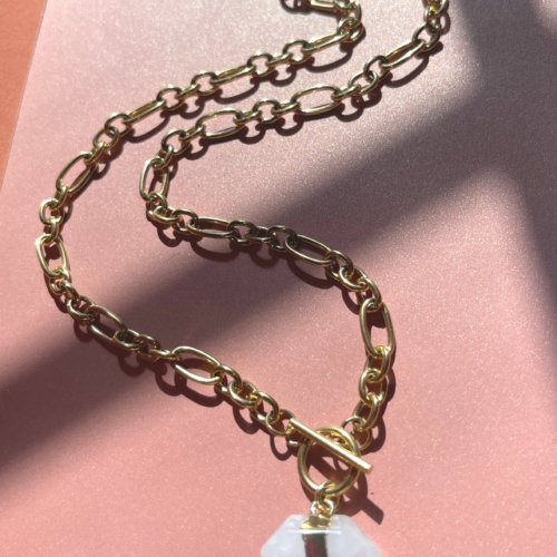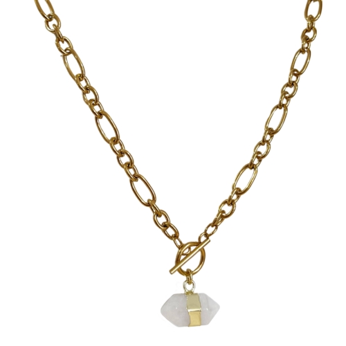NK-621| Close Out Sale! Chunky Chain with Dbl Point Quartz Necklace