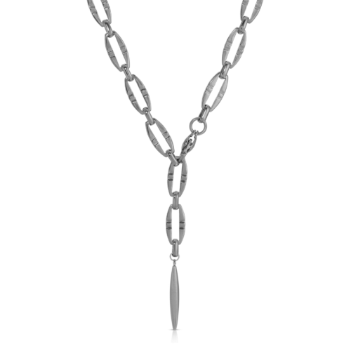 We’re loving the vintage heirloom vibes this chain is giving and a sexy point for a little added edginess. This necklace fastens to itself in the front creating an adjustable Y-necklace. – Phodium Plated Stainless Steel Point- Rhodium Stainless Steel Chain- 24″ Total length (adjustable)- 1″ point-Handmade USA