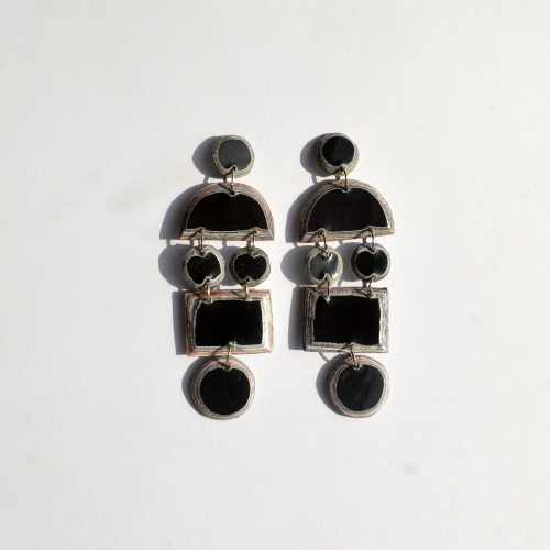 Handmade layered paper earrings, bold and light and easy to wear. Made from 100% waste magazines in Eswatini, Southern Afirca in a fair trade workshop by women artisans. Varnished for durability. Available in black or orange.
