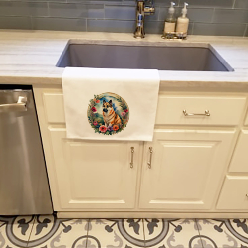 Kitchen Towel Set of 2 featuring breed specific Norwegian Buhund artwork. Spruce up your kitchen decor with Caroline’s Treasures Decorative White Kitchen Towel Set. This set of two dish towels showcases beautiful artwork from one of our talented artists, making them both practical and visually appealing. These towels are crafted from 100% cotton, offering excellent absorbency and durability, making them ideal for any kitchen task. Each white towel measures 19 inches by 28 inches, providing ample coverage for drying dishes or wiping up spills. The standout feature of these towels is the full-color artwork design printed on each one. They can serve as a vibrant accent in your kitchen, turning a functional item into a delightful piece of decor. When it comes to care, these towels are machine washable in cold water and can be dried on low heat. Remember to always use a pressing cloth when pressing the design, and avoid using bleach on the decorated towel. The Decorative White Kitchen Towel Set makes a great gift or a stylish addition to your own kitchen.