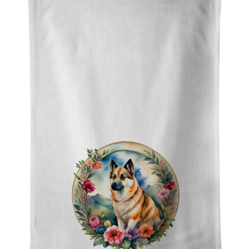 Kitchen Towel Set of 2 featuring breed specific Norwegian Buhund artwork. Spruce up your kitchen decor with Caroline’s Treasures Decorative White Kitchen Towel Set. This set of two dish towels showcases beautiful artwork from one of our talented artists, making them both practical and visually appealing. These towels are crafted from 100% cotton, offering excellent absorbency and durability, making them ideal for any kitchen task. Each white towel measures 19 inches by 28 inches, providing ample coverage for drying dishes or wiping up spills. The standout feature of these towels is the full-color artwork design printed on each one. They can serve as a vibrant accent in your kitchen, turning a functional item into a delightful piece of decor. When it comes to care, these towels are machine washable in cold water and can be dried on low heat. Remember to always use a pressing cloth when pressing the design, and avoid using bleach on the decorated towel. The Decorative White Kitchen Towel Set makes a great gift or a stylish addition to your own kitchen.