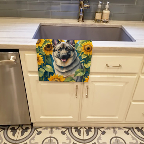 Kitchen Towel featuring breed specific Norwegian Elkhound artwork. Experience the perfect blend of aesthetic appeal and functional excellence with our Plush Velour Kitchen Towels. These are not your ordinary decorative kitchen towels that gather dust. Instead, they are designed to be as practical as they are stylish. The front layer of our towel is constructed from a minky plush polyester, known for its durability and color retention. Unlike conventional kitchen towels, the artwork on our towels is dyed directly into the fabric, ensuring vibrant colors that last. Polish your glassware to a brilliant sparkle using the plush front side of the towel. Flip to the back, crafted from 100% cotton terry loop, to exploit its exceptional absorbency for drying dishes or wiping down counters. Our kitchen towels redefine the concept of functional art, offering lasting quality that maintains the towel’s shape over time. Measuring 15 inches by 25 inches and weighing 2.3 lbs per dozen, these towels deliver an overwhelming sensory experience with their soft, plush, and smooth texture. The edges are meticulously finished with binding, enhancing their durability and visual appeal. For your convenience, these towels are machine washable and can be dried on low heat. After the first wash, the top fabric becomes even softer and fluffier, eliminating the need for ironing. Treat your kitchen to the luxury and functionality it deserves with our plush velour kitchen towels.