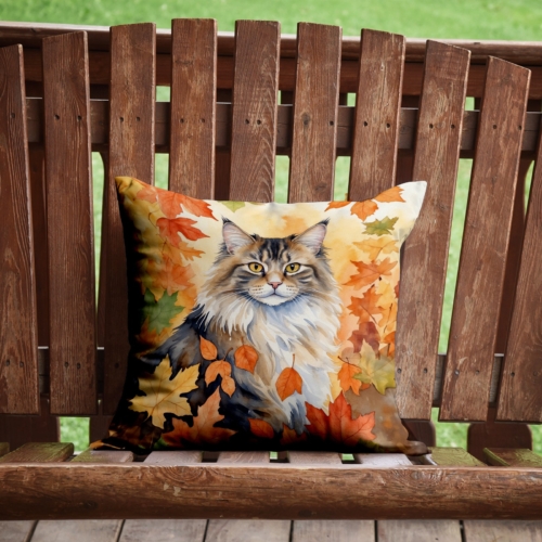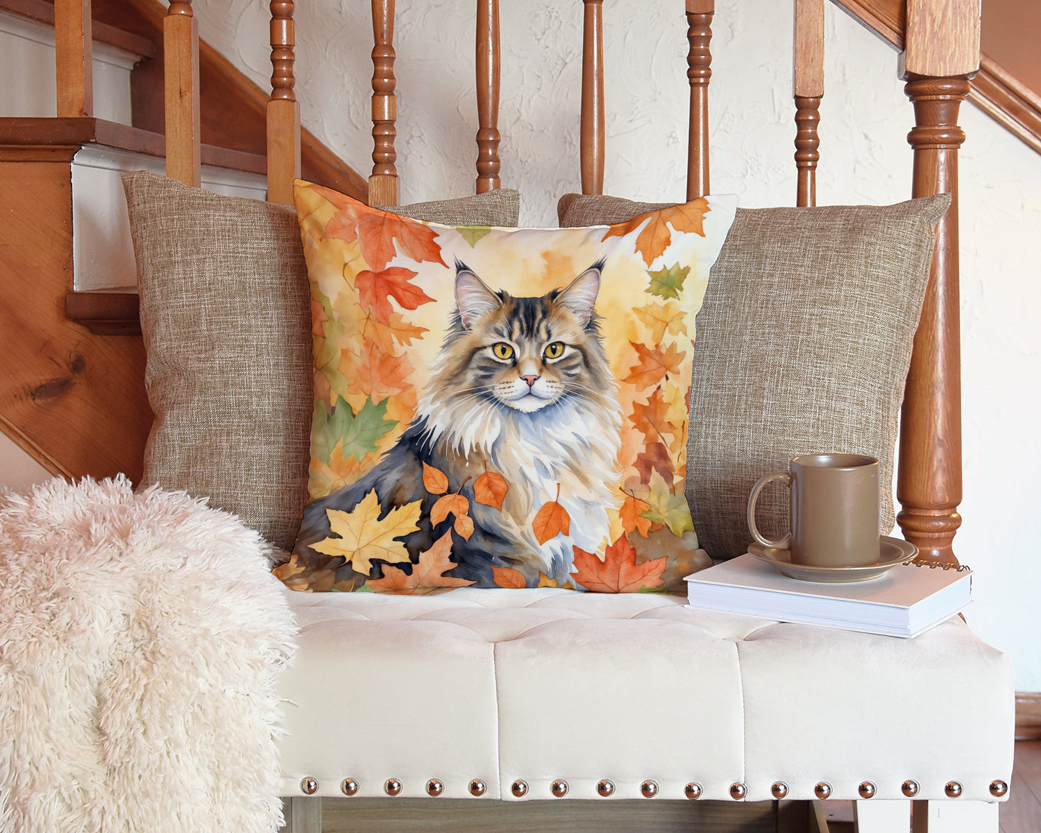 Norwegian Forest Cat in Fall Leaves Throw Pillow