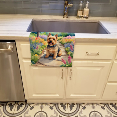 Kitchen Towel featuring breed specific Norwich Terrier artwork. Experience the perfect blend of aesthetic appeal and functional excellence with our Plush Velour Kitchen Towels. These are not your ordinary decorative kitchen towels that gather dust. Instead, they are designed to be as practical as they are stylish. The front layer of our towel is constructed from a minky plush polyester, known for its durability and color retention. Unlike conventional kitchen towels, the artwork on our towels is dyed directly into the fabric, ensuring vibrant colors that last. Polish your glassware to a brilliant sparkle using the plush front side of the towel. Flip to the back, crafted from 100% cotton terry loop, to exploit its exceptional absorbency for drying dishes or wiping down counters. Our kitchen towels redefine the concept of functional art, offering lasting quality that maintains the towel’s shape over time. Measuring 15 inches by 25 inches and weighing 2.3 lbs per dozen, these towels deliver an overwhelming sensory experience with their soft, plush, and smooth texture. The edges are meticulously finished with binding, enhancing their durability and visual appeal. For your convenience, these towels are machine washable and can be dried on low heat. After the first wash, the top fabric becomes even softer and fluffier, eliminating the need for ironing. Treat your kitchen to the luxury and functionality it deserves with our plush velour kitchen towels.