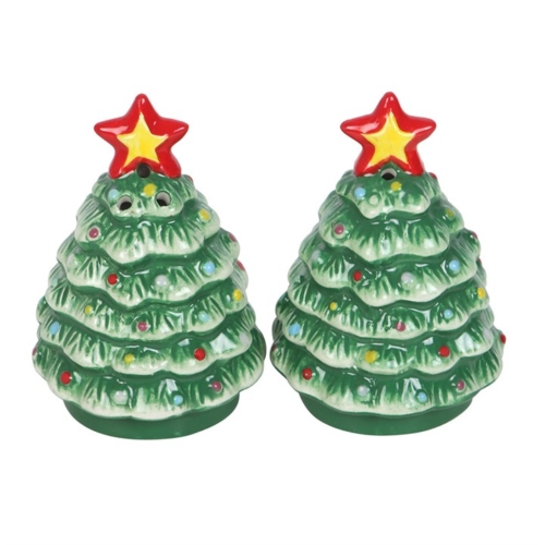 Add a sprinkle of festive charm to the dining table with these ceramic salt and pepper shakers, shaped like traditional Christmas trees. This delightful duo makes a fun addition to a festive dinner setting. Food safe. Hand wash only. Designed by Something Different Wholesale and part of the Nostalgic Christmas collection of colourful Christmas gifts and home décor.