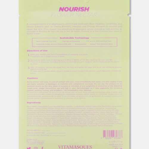A nourishing mask that repairs skin with Multi-Peptides, Ceramides and Flower extracts such as Cherry Blossom, Hibiscus and Orange Blossom.