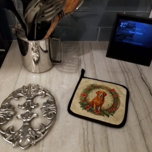 Pair of Pot Holders featuring breed specific Norwich Terrier artwork. Celebrate Christmas with this Christmas Pair of Pot Holders. A Pair of Pot Holders to match your kitchen decor. Made in the USA these are thick and functional. Full color artwork decorates the front polyester fabric of the hot pad and accented by a black trim. Use these at as a trivet for your Thanksgiving or Christmas tablescape. Filled with insulated fabric and quilted for durability. These colorful pot holders will make a great gift for your favorite home cook or executive chef. Each pot holder measures approximately 7 1/2 inches by 7 1/2 inches. A hanging tab is included.