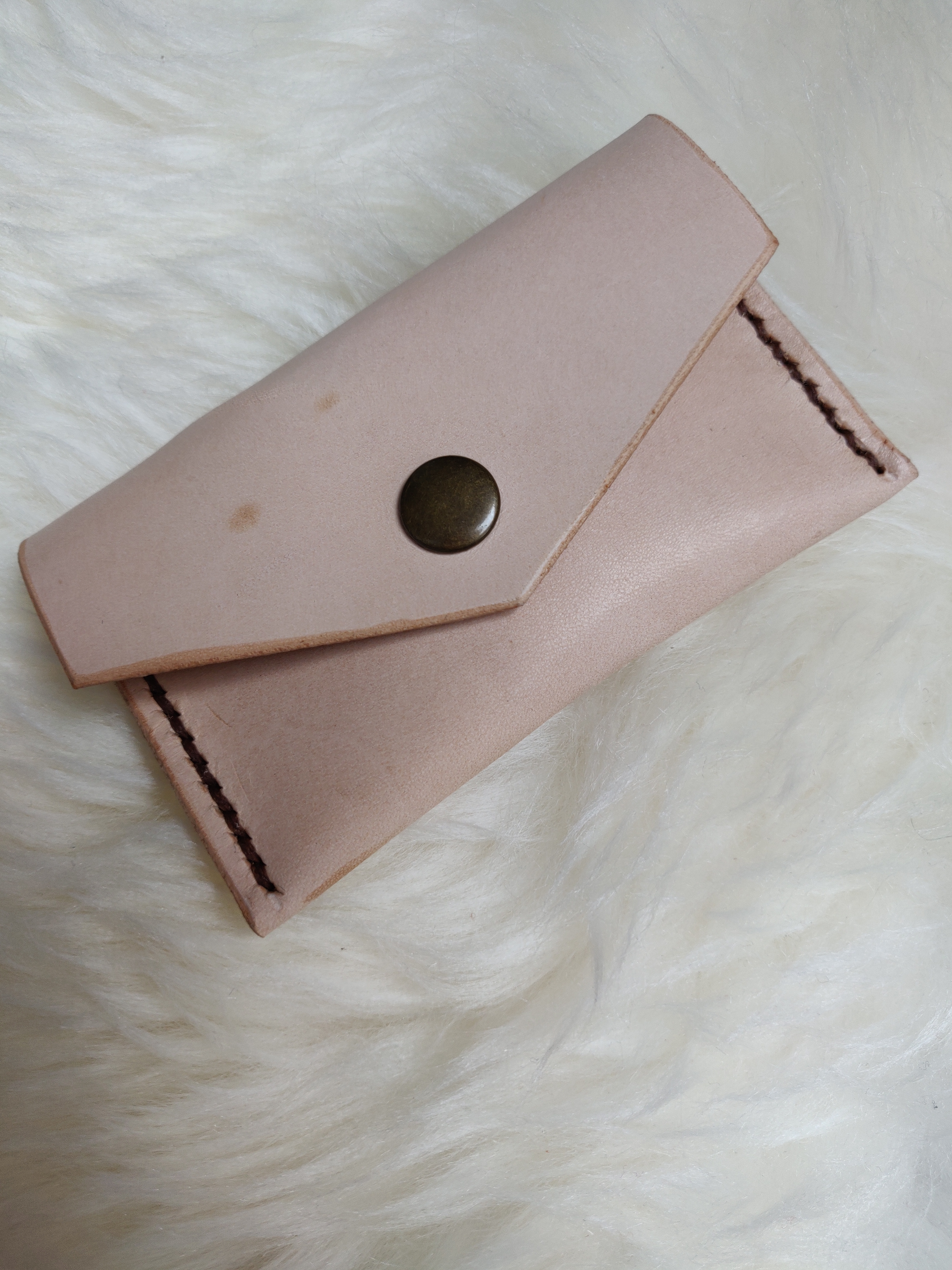 This genuine leather card wallet is made from high quality veg tanned tanned leather. This minimalist design is the perfect companion for a quick trip to the shops and has is sized to fit a 4-6cards, but can also be used as a coin purse or perhaps hold some paper money (folded).