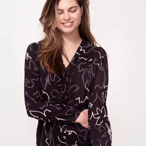 Nyssa Top in White Sketch Floral Print