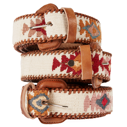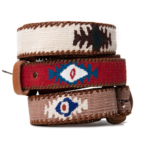 Colourful and stylish Guatemalan polo belts made in leather and cotton. Unisex. These belts have leather stitching and metal eyelets to avoid any fraying and to guarantee their quality.