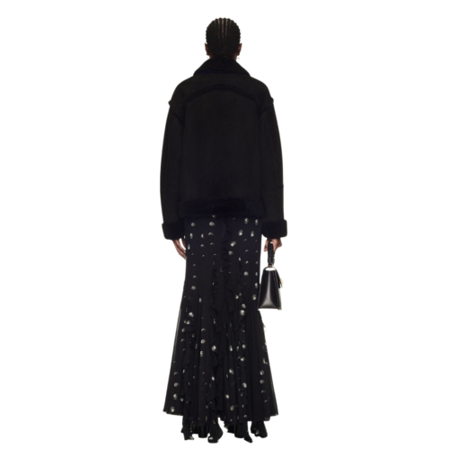 The Off-White Round Shoulder Shearling Jacket is crafted from 100% premium leather, delivering exceptional warmth and durability with a luxurious feel. Made in Italy, this jacket highlights expert craftsmanship and meticulous attention to detail, ensuring a high-quality finish. Its distinctive round shoulder design offers a modern twist on classic shearling styles, elevating your outerwear game with bold, contemporary flair. Perfect for cooler seasons, this jacket combines comfort, style, and versatility, making it a standout piece that effortlessly enhances any wardrobe.