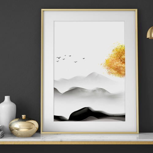 You will receive 3 non-framed watercolor Landscape wall art prints with Japanese inspiration.