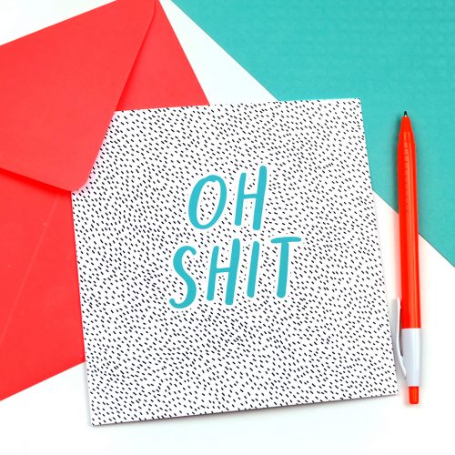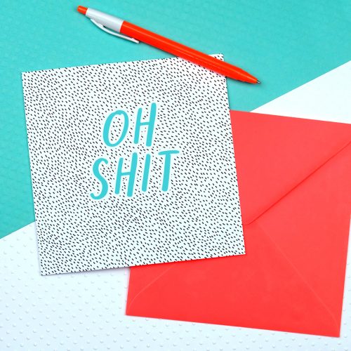 A funny card that is suitable for so many occasions. Forgot your bestie’s birthday? Oh shit. In the doghouse from that missed anniversary? Oh shit. Gutted your favourite work colleague is leaving? Oh shit. This funny card has so many uses depending on how you choose to read it. Is it ‘Oh shit – I made a mistake’ or ‘Oh shit – that’s amazing news’? Printed on tip-top quality, FSC-certified 350gsm thick card, the dotty design features the wording ‘Oh Shit’ in a bold, calligraphic, handwritten style. This funny all-purpose card comes with a bright neon orange envelope. Card and envelope will be sent in a sturdy card-backed envelope. We’ve taken the #nakedcards pledge to cut out plastic card wrappers. You can find out more by searching the hashtag on social media. The card is blank inside for your own message. An original design by Paper Plane. Colours may vary from those on screen due to different monitor set-ups.Card: H148 x W148mm. Envelope: H155 x W155mm.