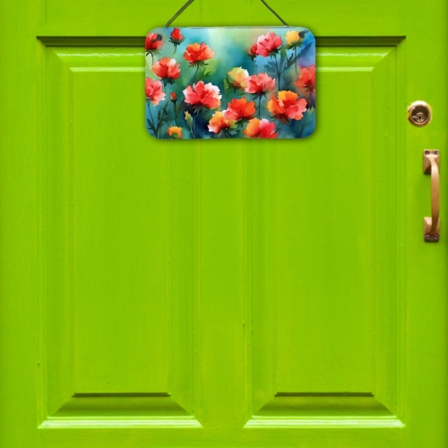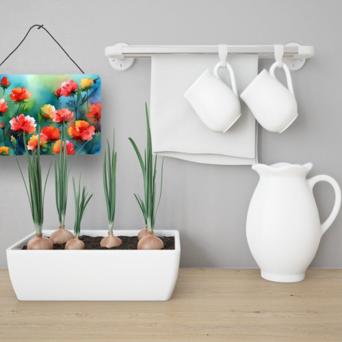 Wall or Door Hanging Prints featuring breed specific Ohio Scarlet Carnations artwork. Add a splash of color and artistic flair to any indoor or outdoor space with our Aluminum Artwork Prints. These unique prints, featuring full-color, multicolor designs, provide a versatile decorative touch that can enhance a kitchen, bathroom, office, outdoor patio, or even the front door area. Each print measures 8 inches by 12 inches, making it the perfect size to catch the eye without overwhelming your space. Constructed with durability in mind, these prints can be placed outdoors and withstand direct sunlight for a significant amount of time before any fading begins. Designed for easy installation, each print features a black hanging rope and has a lightweight profile. This allows for quick hanging with just about any nail or screw. For safety and aesthetic appeal, the print’s corners are gently rounded. The back of the print showcases a brushed silver color for an added touch of elegance. Rust and fade-resistant, these Aluminum Artwork Prints are not only beautiful but are also built to last. Elevate your space with these stunning prints, crafted with care and artistic passion.