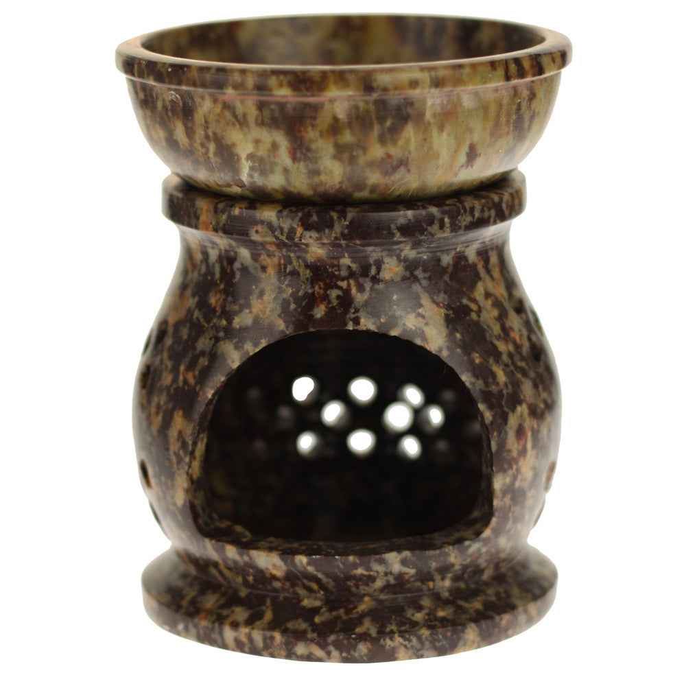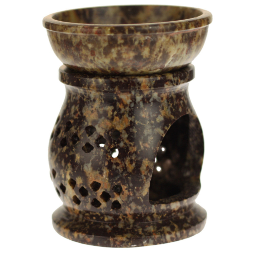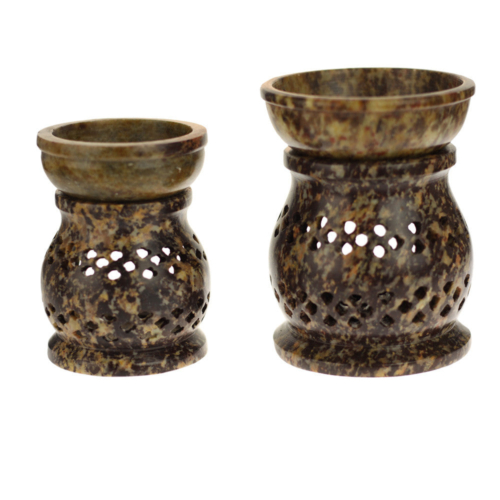This cylindrical essential aroma lamp has been carved into a modern design that is a visual treat enhancing any room with its granite-like appearance. The gentle curves of the carved-out leaves allow the glow of the candlelight to be seen while the carved pattern gently illuminates the surroundings. Use as an essential or fragrance oil burner. Manufacturing process: Being easy to carve, soapstone oil diffusers are designed into a multitude of shapes and patterns. Soapstone is no ordinary rock. Like its name suggests, it is sometimes soft as soap—well, relatively speaking, that is, if we compare it to other rock—ideal for carving into decorative pieces for your home. Actually, people have been carving unique, symbolic and colorful creations with this medium for thousands of years. Soapstone is softer than most other rock because of its high mineral content of talc. The more talc it has in it, the softer its grade. Soapstone with high talc content can even possess a soapy feel when touched. It can absorb heat, store it and radiate it out evenly. How to use: Place the soapstone oil diffuser on a stable surface, out of reach of young children and pets. Place a tealight candle at the hollow space of the diffuser. Pour about 1 fl. oz. of tap water into the upper dish. Drop in about 8-10 drops of essential oil into the water. Specs SKU: 704-75 UPC: 8-09581-70475-4 Contains: 1pcs LXWXH: 3.25”X3.25X4” Weight: 0.9 lb Made in India Return Policy: This product is fully refundable.