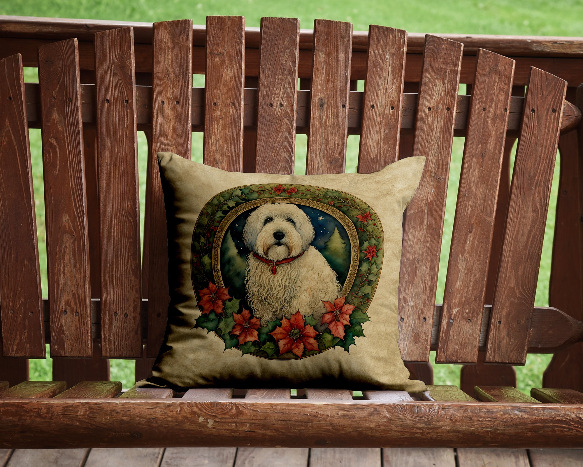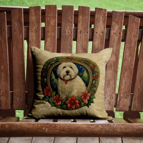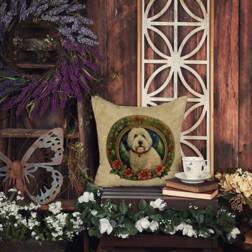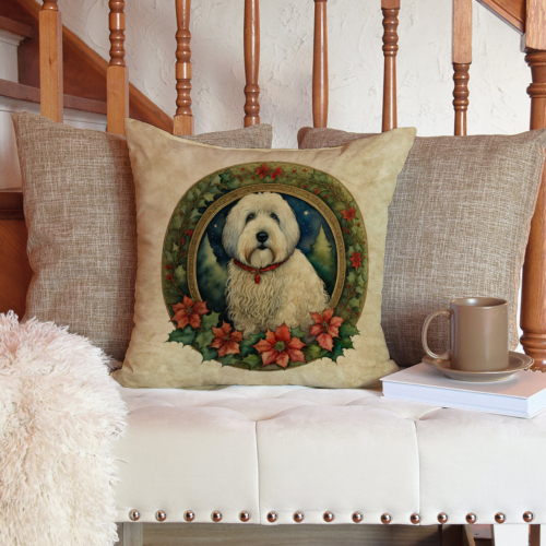 Old English Sheepdog Christmas Flowers Throw Pillow