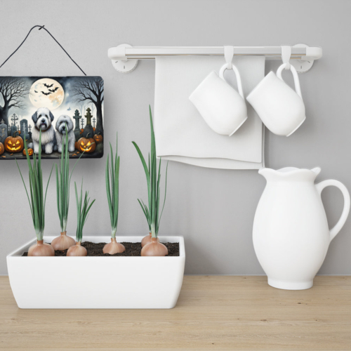 Wall or Door Hanging Prints featuring breed specific Old English Sheepdog artwork. Celebrate Halloween with this Halloween Metal Print. Add a splash of color and artistic flair to any indoor or outdoor space with our Aluminum Artwork Prints. These unique prints, featuring full-color, multicolor designs, provide a versatile decorative touch that can enhance a kitchen, bathroom, office, outdoor patio, or even the front door area. Each print measures 8 inches by 12 inches, making it the perfect size to catch the eye without overwhelming your space. Constructed with durability in mind, these prints can be placed outdoors and withstand direct sunlight for a significant amount of time before any fading begins. Designed for easy installation, each print features a black hanging rope and has a lightweight profile. This allows for quick hanging with just about any nail or screw. For safety and aesthetic appeal, the print’s corners are gently rounded. The back of the print showcases a brushed silver color for an added touch of elegance. Rust and fade-resistant, these Aluminum Artwork Prints are not only beautiful but are also built to last. Elevate your space with these stunning prints, crafted with care and artistic passion.
