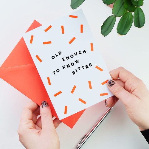 Hand-pressed with neon foil. Part of our Neonfetti range – all pressed by us in our Rutland studio in the UK. Printed on 120mm x 170mm 350gsm uncoated card for a quality finish and feel. Card and envelope will be sent in a sturdy card-backed envelope. We’ve taken the #nakedcards pledge to cut out plastic card wrappers. You can find out more by searching the hashtag on social media. Comes with a matching neon envelope.