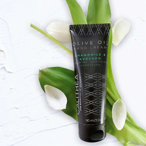 Packed with the goodness of Vitamin E, Chamomile, Olive and Avocado Oils, the CALITHEA Olive Oil hand cream hydrates, softens, and restores skin. Avocado Oil is rich in antioxidants and Sterolin. While antioxidants make the skin supple, Sterolin helps to soften the skin and has anti-aging benefits. The Chamomile herb is known for inducing calmness, relaxation, and serenity. The Olive Oil hand cream with Chamomile and avocado is ideal for those with sensitive or dry skin types. Free of parabens, silicones, paraffin oil, allergens, phthalates, synthetic dyes, alcohol, ethanolamine and GMOs, the Olive oil hand cream provides deep nourishment for the skin. E.U. PRODUCT MADE IN GREECE