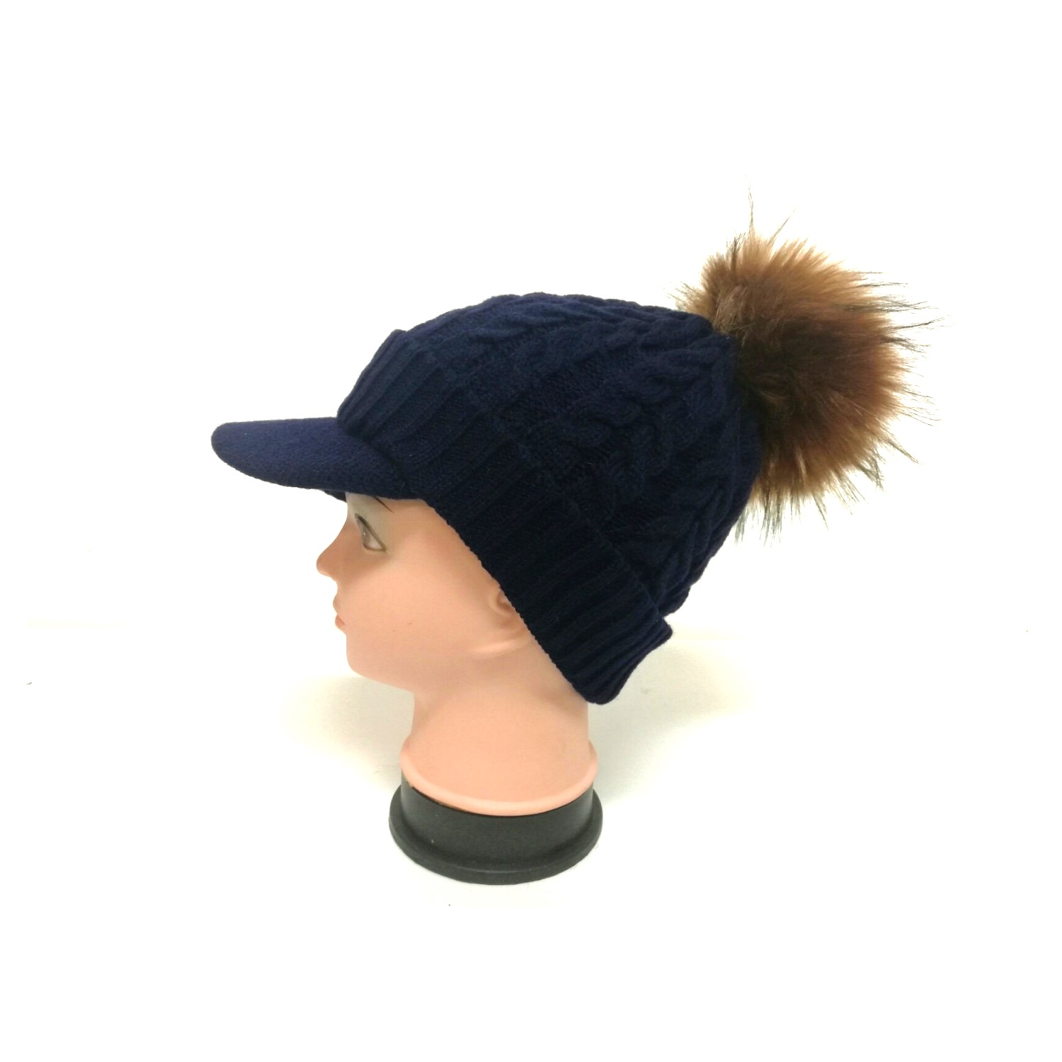 One Size Faux Fur Cable Knitted Peak Hat Fur103 Navy