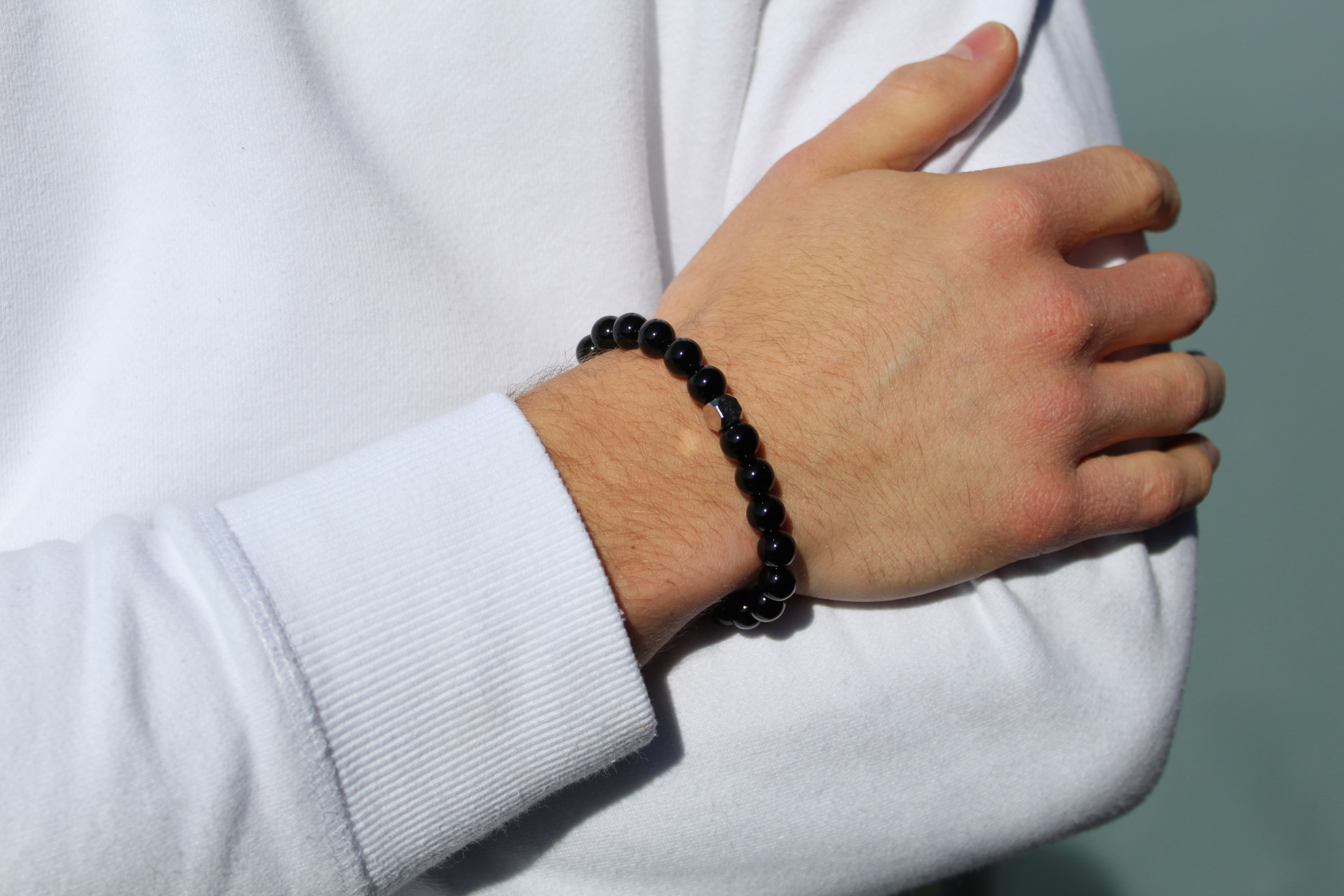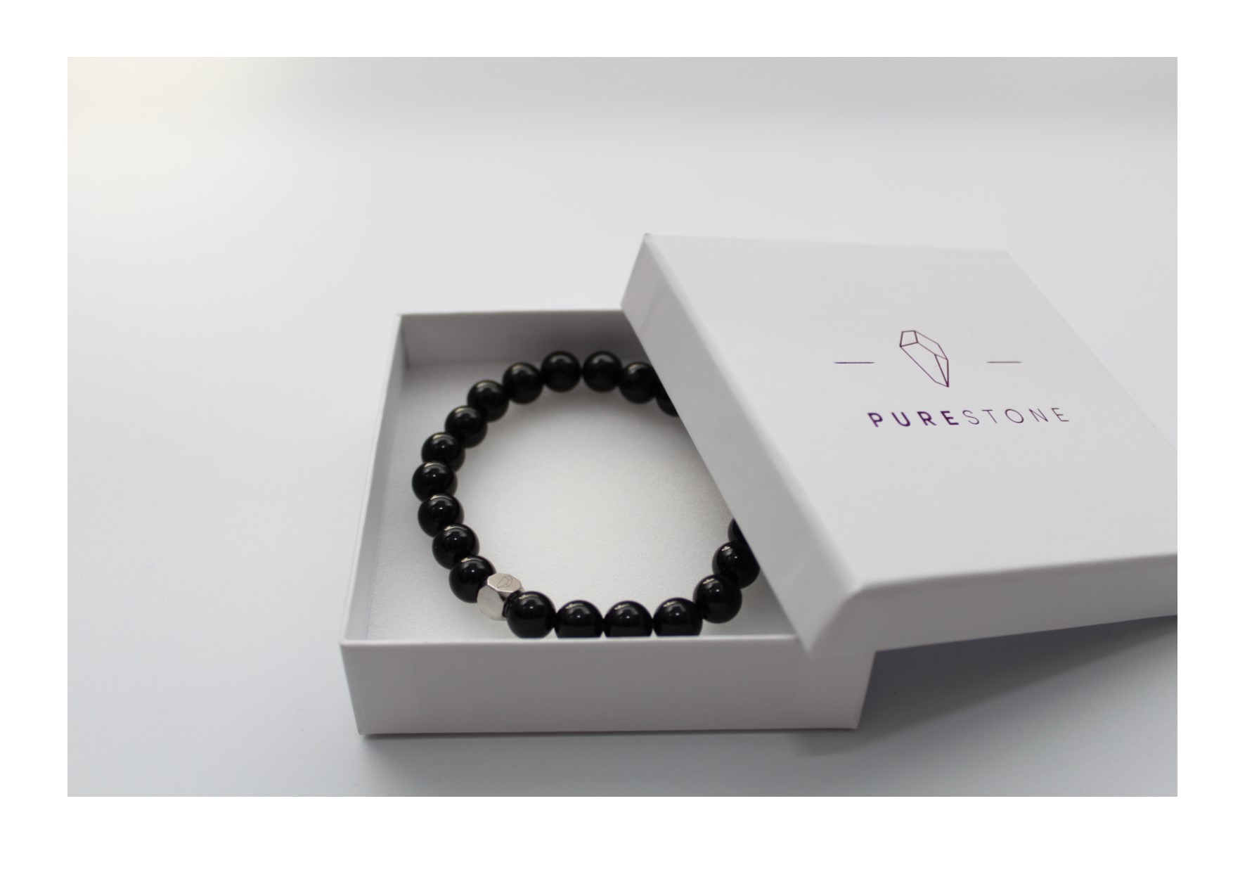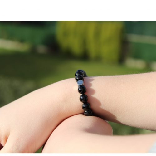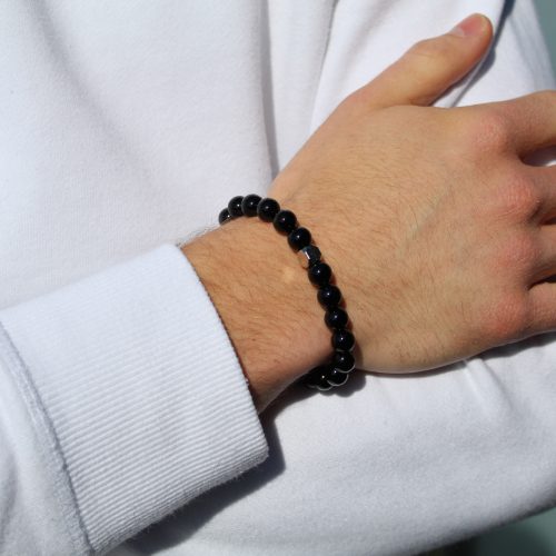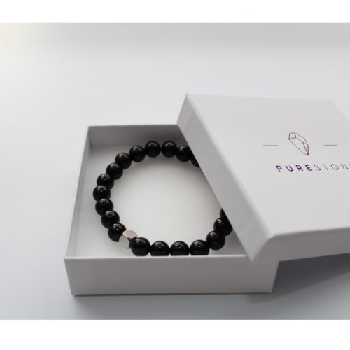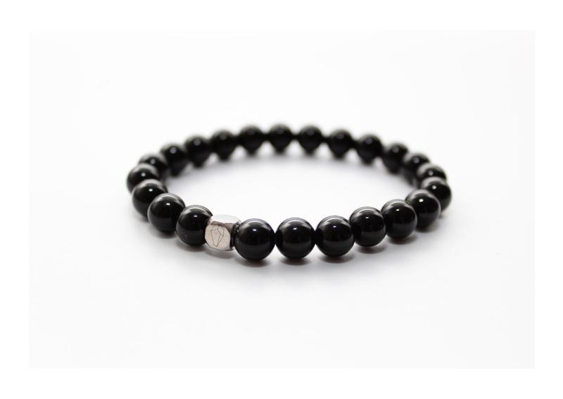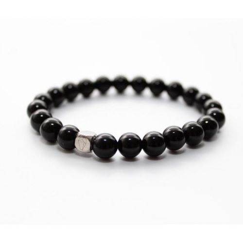 This bracelet is made from 8mm Onyx natural stone beads and finished with a Purestone stainless steel logo bead. Everything is strung on a strong elastic nylon thread to deliver a bracelet of the best quality possible.