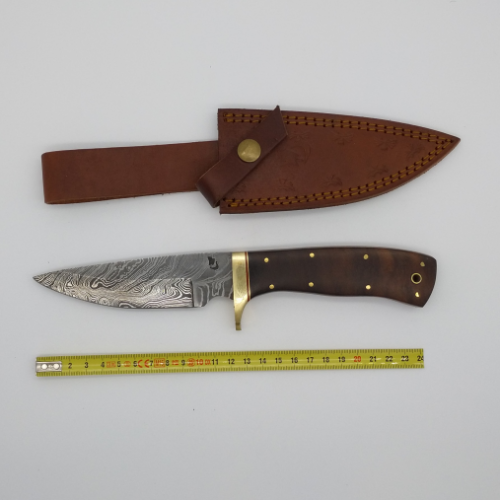 The blade is full tang, fully sharp and has a hardness of 56HRC. All of our knives and pocket knives are delivered with a hand-stitched leather sheath.