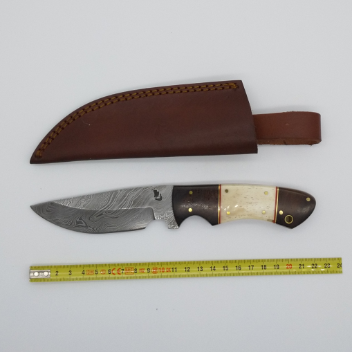 The blade is full tang, fully sharp and has a hardness of 56HRC. All of our knives and pocket knives are delivered with a hand-stitched leather sheath.