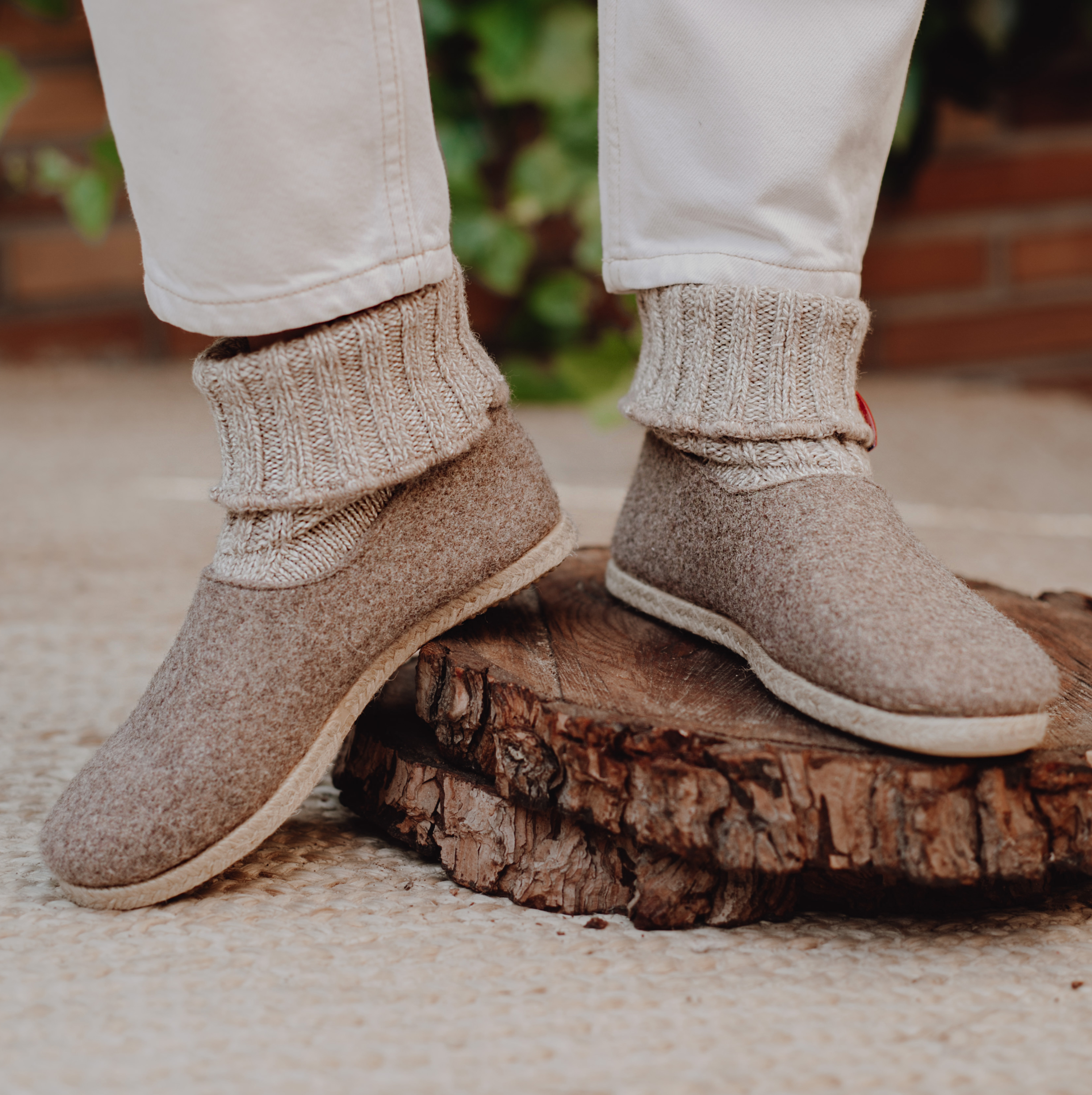 Opplav Valhalla womens wool boots,70% Australian wool, a warm knit from Wool that adapts to your mood. You can wear them stretched, a little dropped or with a turn. This VALHALLA WOOL model has a cork insole, while our characteristic lightweight vulcanized rubber outsole provides cushioning, traction and unbeatable comfort. A perfect boot to be at home, office and / or to get away to our favorite pub.