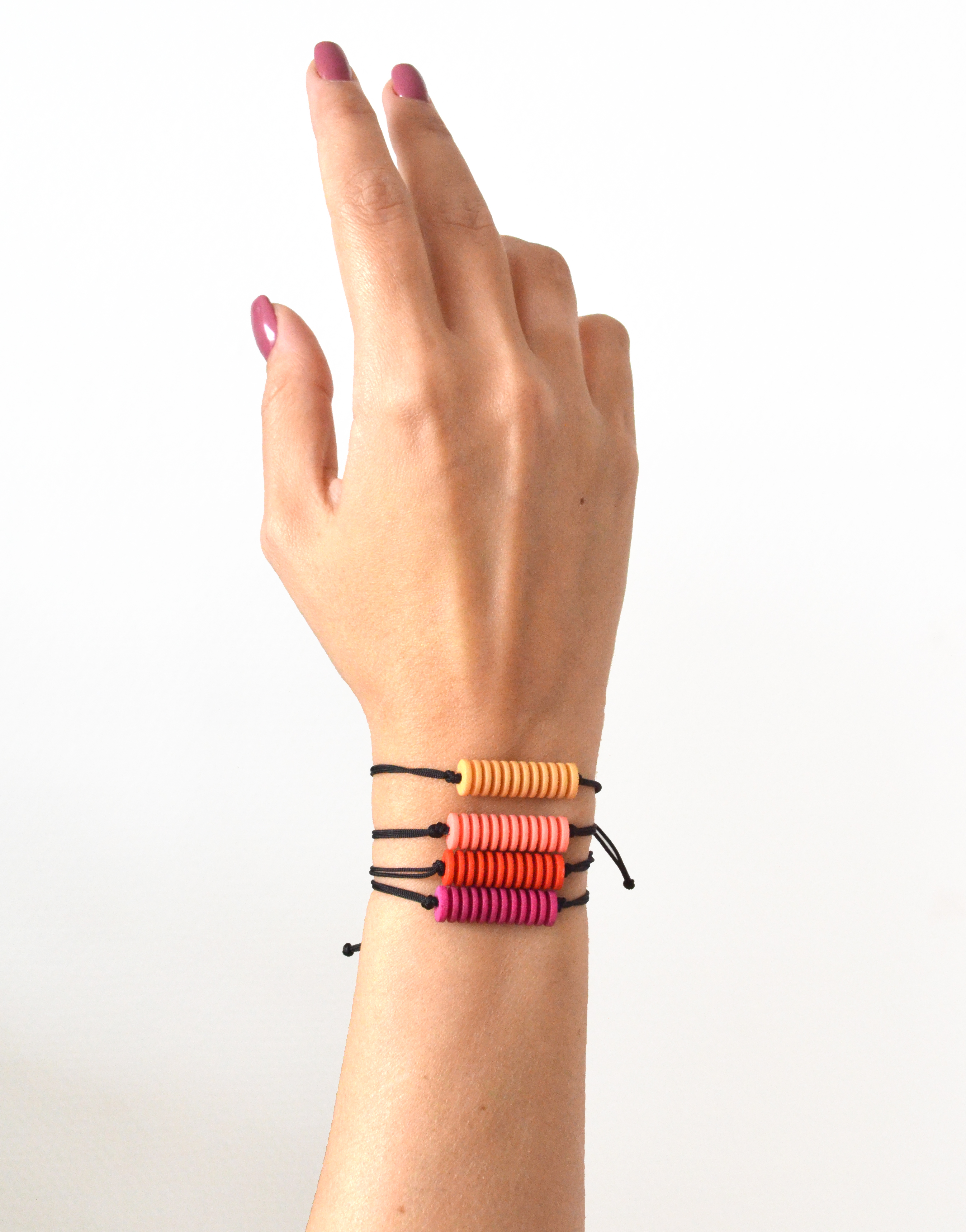 This arm candy is simple and edgy, will add a touch of colour to your day!