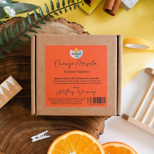 Orange Masala Shower Steamer (Limited Edition – Christmas)A seasonal Christmas exclusive, Orange Masala blends orange, cardamom and aromatic spices. Ideal for gift boxes, festive displays and stocking-filler tables.Why Retailers Love It:Strong Christmas visual + unique aromatherapy scent = fast seasonal sell-through.Key Features:Limited editionPure essential oilsVegan, plastic-freeEasy add-on or impulse buyRRP: £7.50