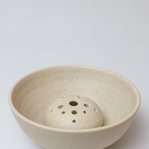 Our oatmeal flower frog is now available as a set with our new oatmeal porcelain Harvest bowl, the frog is not visible from afar, and neatly fits within this multi-functional Harvest bowl. Makes the perfect gift for the garden lover or those keen on experimenting ikebana inspired floral arrangements.