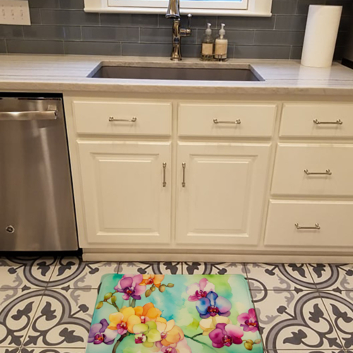 Memory Foam Kitchen Mat featuring breed specific Orchids artwork. Transform your floor into a work of art with Caroline’s Treasures’ Memory Foam Mat. This mat offers not only a stunning visual appeal but also a luxurious, plush feel that’s incredibly comfortable to the touch. It’s a versatile, machine-washable mat designed for both bath and kitchen use, ensuring you experience the best in comfort and convenience. Care Instructions: Maintaining this memory foam mat is a breeze. Simply follow the care instructions on the product tag. It’s recommended to wash in cold water and dry on a low-temperature setting in the dryer. This ensures the mat retains its quality and longevity, allowing you to enjoy its beauty and comfort for a long time. Caroline’s Treasures’ Memory Foam Mat Machine Washable is the perfect blend of artistry, comfort, and practicality, making it a standout addition to any space. Upgrade your home decor with this versatile and stylish mat today.