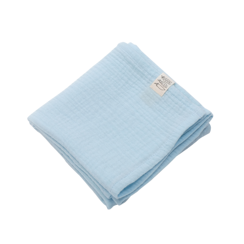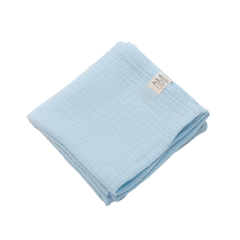 Square ecological muslin scarf in blue, soft and very practical. Very loose fabric that makes it very absorbent.