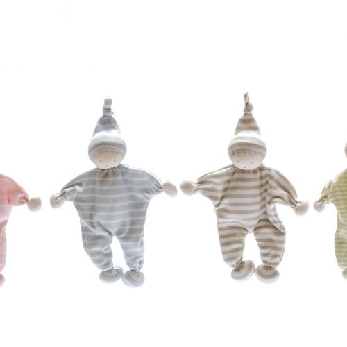 Made from 100% organic Egyptian cotton by a fair trade cooperative. Made from fabric left over from the manufacture of baby clothes. 100% organic cotton stuffed with 100% organic cotton. Suitable from birth and machine washable