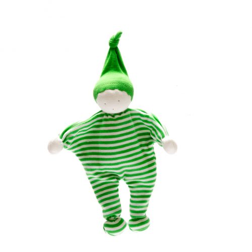 Made from 100% organic Egyptian cotton by a fair trade cooperative. Made from fabric left over from the manufacture of baby clothes. 100% organic cotton stuffed with 100% organic cotton. Suitable from birth and machine washable