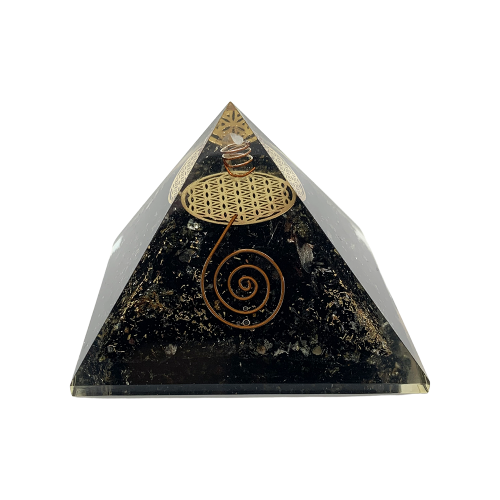 Orgonite is a mixture of catalyzed fibreglass resin with metal shavings, particles or powders, poured into moulds. It is said that the orgone energy is the universal life energy from which all nature, pervasive and omnipresent, is created. The Orgone Pyramid creates a peaceful environment by enhancing the positive energies in a room, and Gomti Chakra acts as a protective amulet. It brings a significant effect on cleaning, healing and purifying. 6x8x8cm.