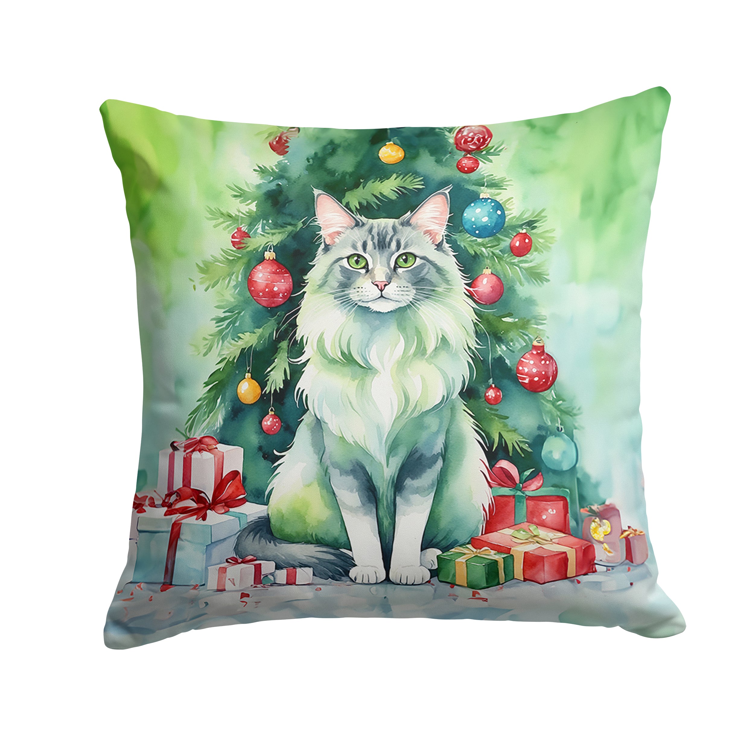 Oriental Longhair Cat By the Christmas Tree Throw Pillow