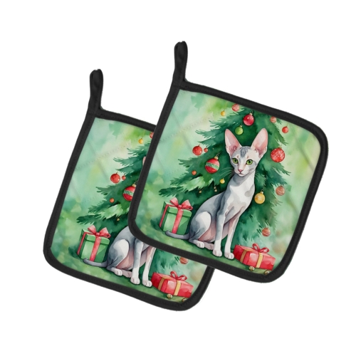 Pair of Pot Holders featuring breed specific Oriental Shorthair artwork. Celebrate Christmas with this Christmas Pair of Pot Holders. A Pair of Pot Holders to match your kitchen decor. Made in the USA these are thick and functional. Full color artwork decorates the front polyester fabric of the hot pad and accented by a black trim. Use these at as a trivet for your Thanksgiving or Christmas tablescape. Filled with insulated fabric and quilted for durability. These colorful pot holders will make a great gift for your favorite home cook or executive chef. Each pot holder measures approximately 7 1/2 inches by 7 1/2 inches. A hanging tab is included.