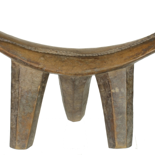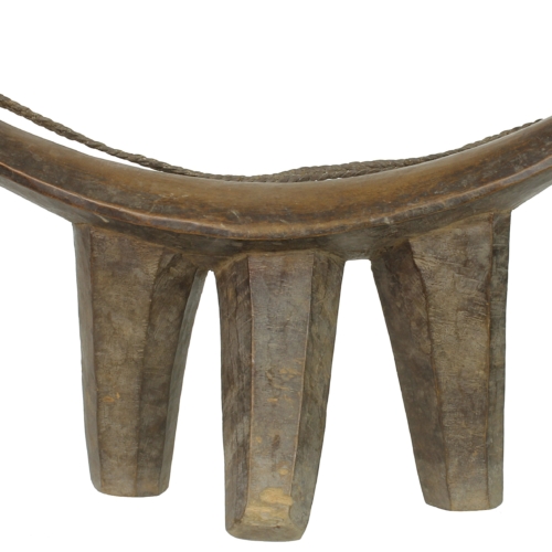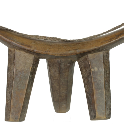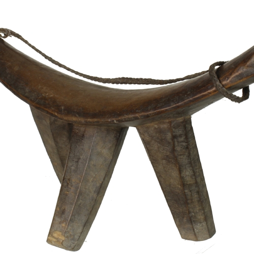 The Dinka are a group of people whom reside in South Sudan. This headrest hand-carved from a single piece of wood. In many African cultures, headrests such as these are used to support the head during sleep. However, in some cases, the headrest is used to preserve a sophisticated hair style. This headrest is equipped with a leather strap, allowing the stool to be carried more easily and perhaps for long distances. In traditional African culture beds were not like western beds. In fact, many people would sleep on the ground, or nap on the ground for a short period of time during travel. The headrest has a slight dip in the top which forms two bird heads at each end. The double bird motif was used in East Africa from Pre-Dynastic times in Ancient Egypt. This headrest measures: 20″ x 7.5″ x 10″