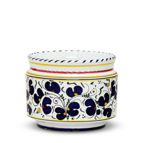 ORVIETO BLUE ROOSTER: Cylindrical Cover Pot – Cachepot Planter (Small)