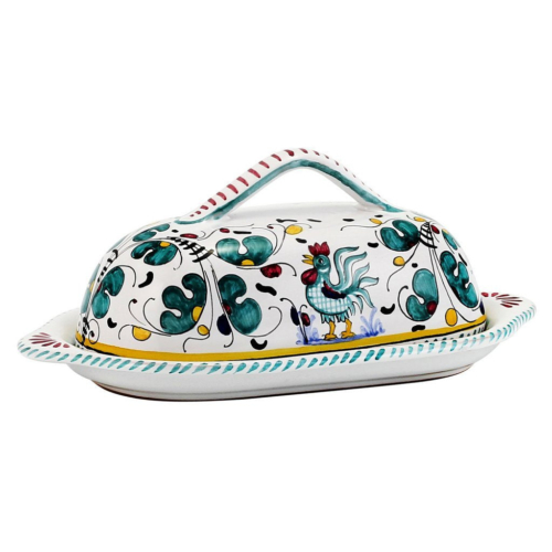 The Orvieto Rooster design is an ancient and traditional pattern that originated in the Renaissance-era hilltop town of Orvieto, Italy.At the heart of the Orvieto pattern is a crowing rooster motif, which symbolizes blessings, prosperity, and good health.This symbol has stood the test of time and continues to be a popular choice for those seeking to add a touch of traditional Italian charm to their home decor.Our Orvieto Rooster products are available in three stunning colors: Burgundy Red, Deep Blue, and Aqua Green.Each piece is carefully crafted to the highest standards of quality and beauty, using the same techniques that have been passed down through generations of Italian artisans.Choose your favorite color and start enjoying the blessings, prosperity, and good health that the Orvieto Rooster represents today!SIZE: 9″ Long X 5″ Wide X 3.5″ High