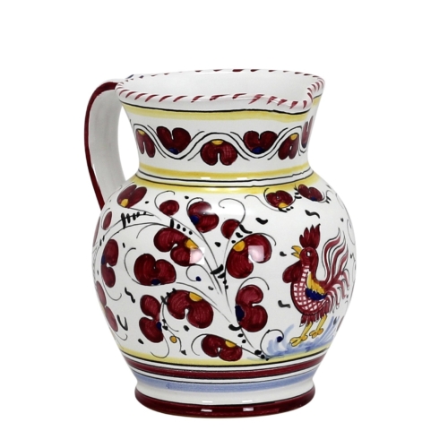 The Orvieto Rooster design is an ancient and traditional pattern that originated in the Renaissance-era hilltop town of Orvieto, Italy.At the heart of the Orvieto pattern is a crowing rooster motif, which symbolizes blessings, prosperity, and good health.This symbol has stood the test of time and continues to be a popular choice for those seeking to add a touch of traditional Italian charm to their home decor.Our Orvieto Rooster products are available in three stunning colors: Burgundy Red, Deep Blue, and Aqua Green.Each piece is carefully crafted to the highest standards of quality and beauty, using the same techniques that have been passed down through generations of Italian artisans.Choose your favorite color and start enjoying the blessings, prosperity, and good health that the Orvieto Rooster represents today!SIZE: 5.5″ DIAM. (Belly) X 6.0″ HIGH ( 1.25 Liter – 42 OZ.)