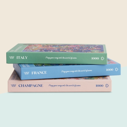 Uncover the hand-selected bundle of our favorite puzzles. This thoughtfully curated collection showcases puzzles inspired by the captivating regions of Champagne, Italy, and France. These regions hold a special place in our hearts, and each puzzle reflects the essence and allure of their distinctive wine cultures. Experience the effervescent charm of Champagne, with its sparkling delights and storied traditions. Lose yourself amidst the rustic vineyards of Italy, where centuries of winemaking heritage have produced an array of exquisite flavors. Explore the iconic wine regions of France, where terroir and craftsmanship converge to create wines that embody the essence of sophistication.With each puzzle, immerse yourself in the rich heritage, flavours, and breathtaking beauty of these beloved regions. This bundle offers a delightful journey of discovery and appreciation. Let these puzzles be your guide as you unravel the secrets and treasures that await in each sip. Each puzzle is 1000 pieces and comes with a full-size poster of our design and a box stand.Each completed puzzle is: 48 x 68 cm; 18.9″ x 26.8″Each poster is: 48 x 68 cm; 18.9″ x 26.8″Each box is: 33 x 22.7 x 3.9 cm; 12.9″ x 9.9″ x 1.5″