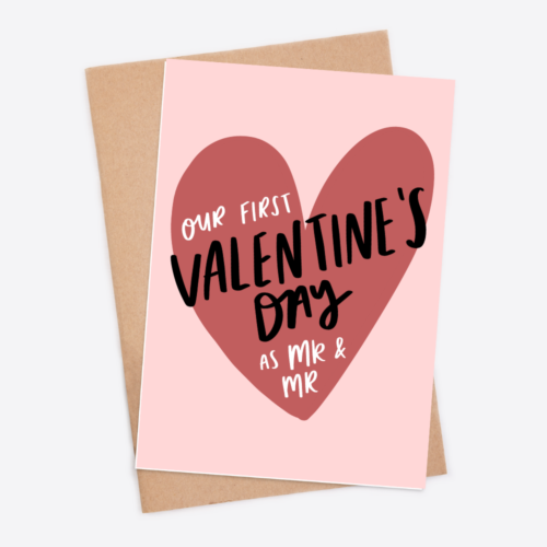 Reads “Our First Valentine’s Day as Mr & Mr” in our signature hand-lettered style over a heart illustration.